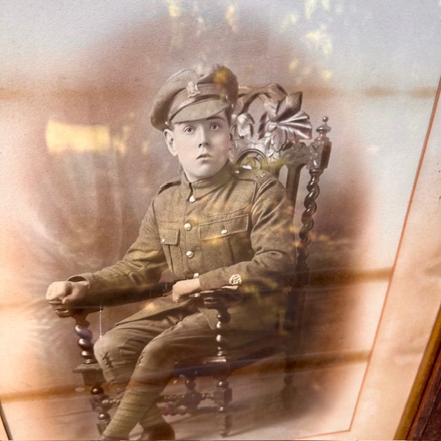 Ref: XXX - A Large Framed WW1 Period Soldier Studio Portrait.