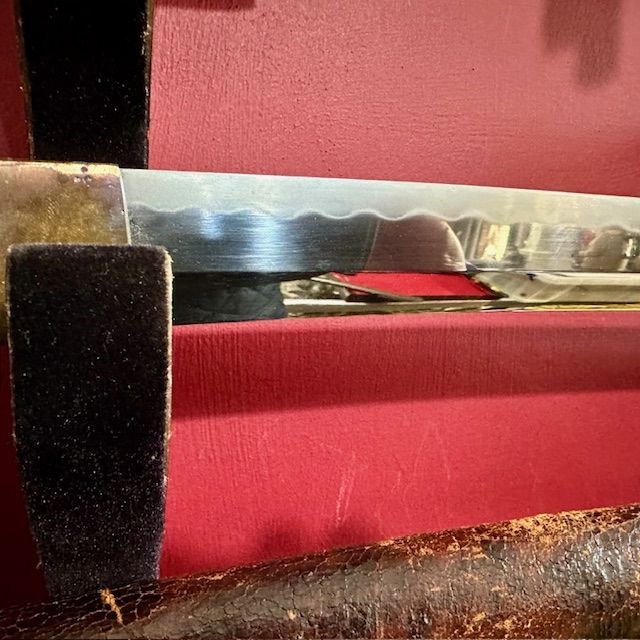 A very nice original example of a WW2 Shingunto with part civilian mounts. Fabulous condition blade, as can be seen from the images. 'Sho' stamping to tang indicating a mill steel example.