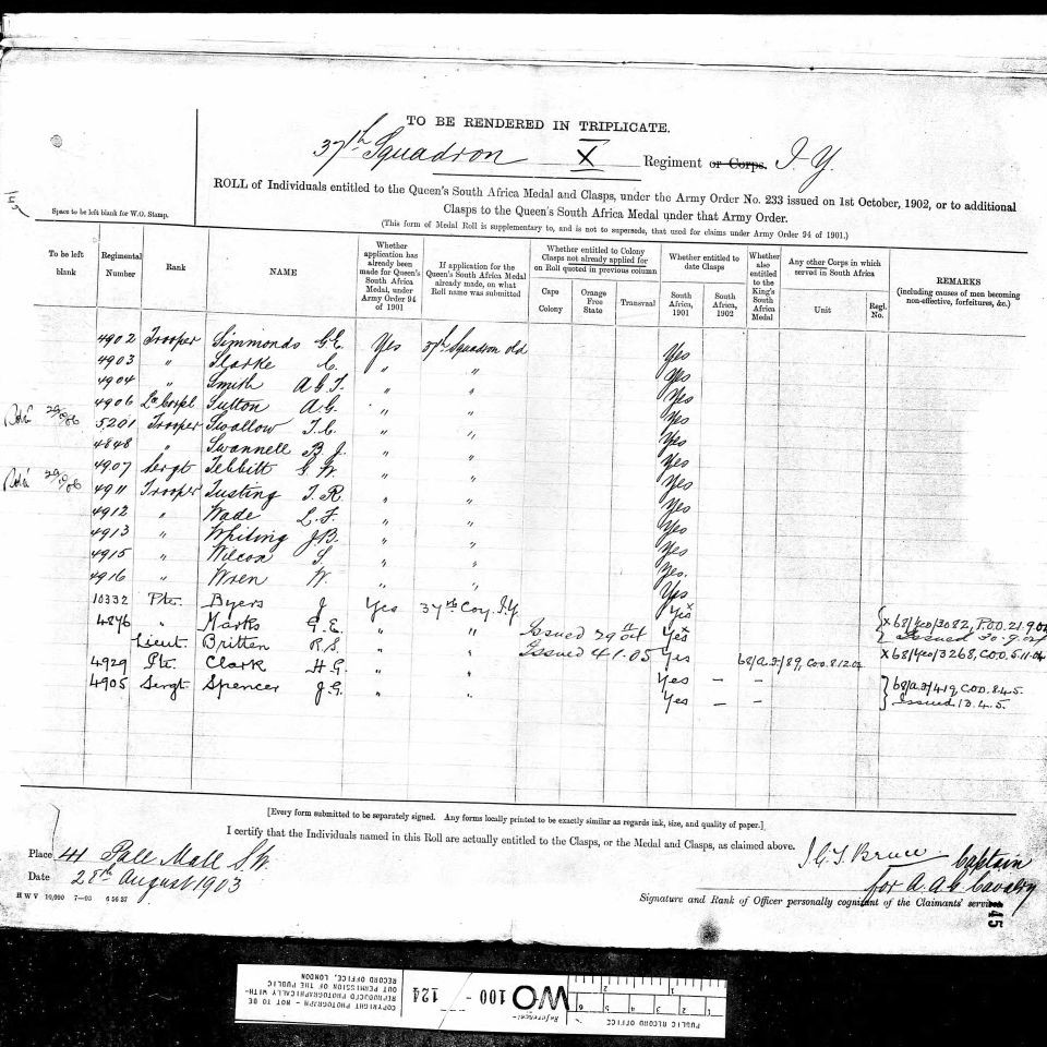 4911 .TPR .T. R. TUSTING. 37TH. COY. IMP. YEO (37th Squadron).