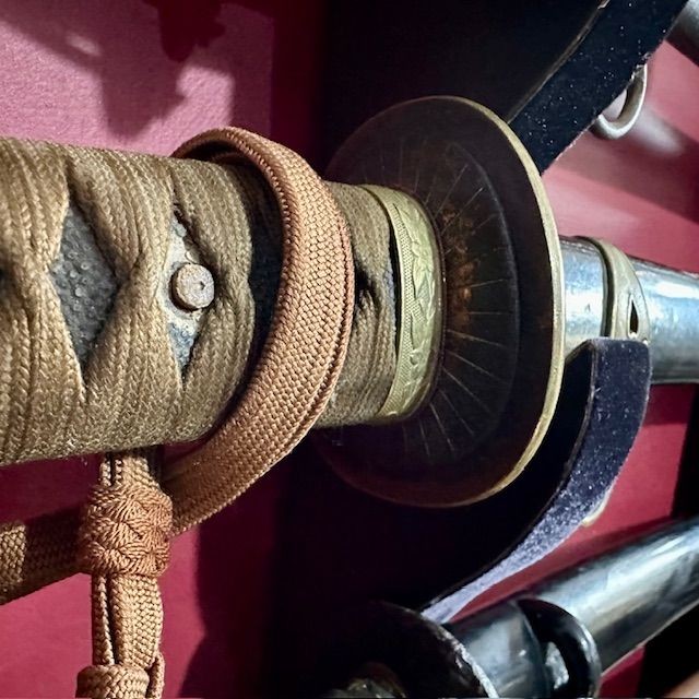 The blade on this example is in excellent condition and quite heavy with a o-kissaki (large point) reminiscent of Hizen-To work, form and style. However, this example is a stainless steel handmade example and oil queched, which was most common with Naval officer's swords. Nakaga is plain and unmarked.