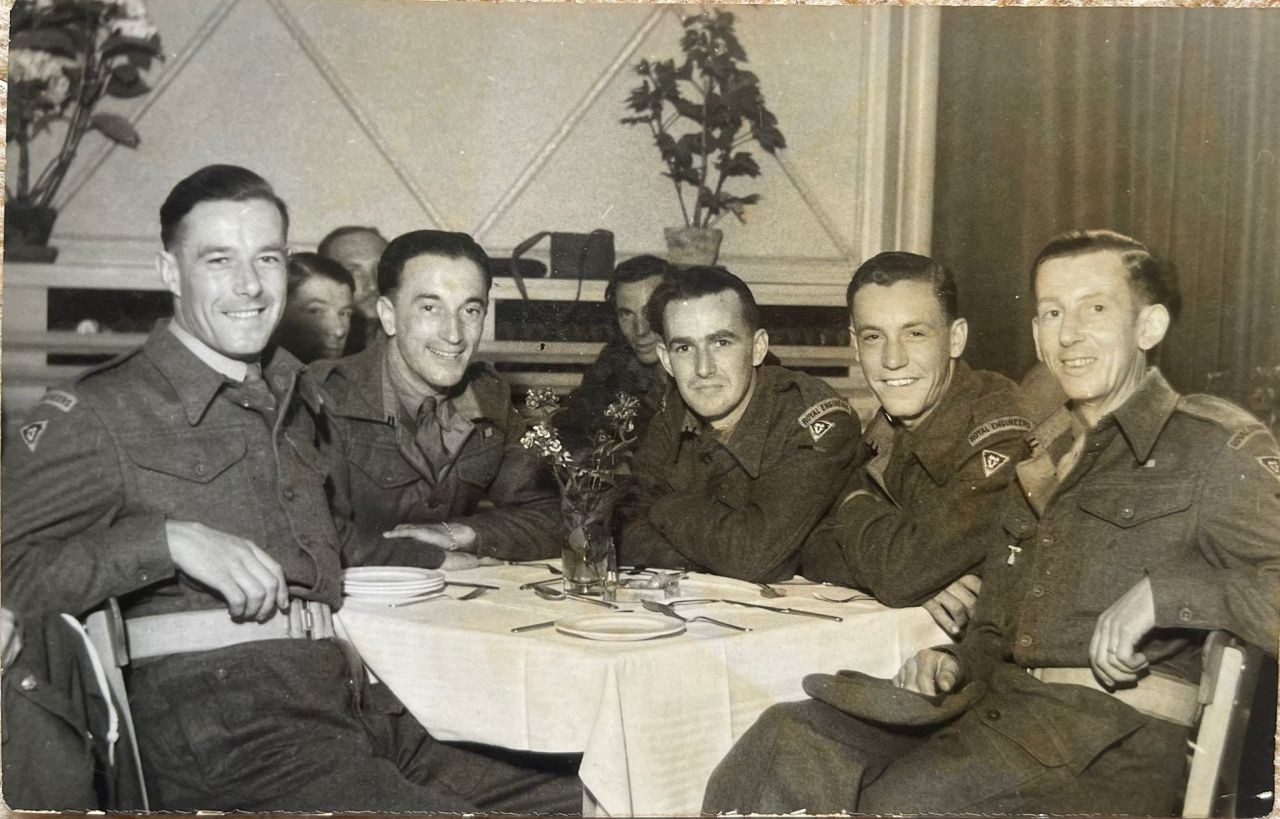 Our man is sitting 1st left on the main tank picture and this picture was taken in Eindhoven in December 1944.